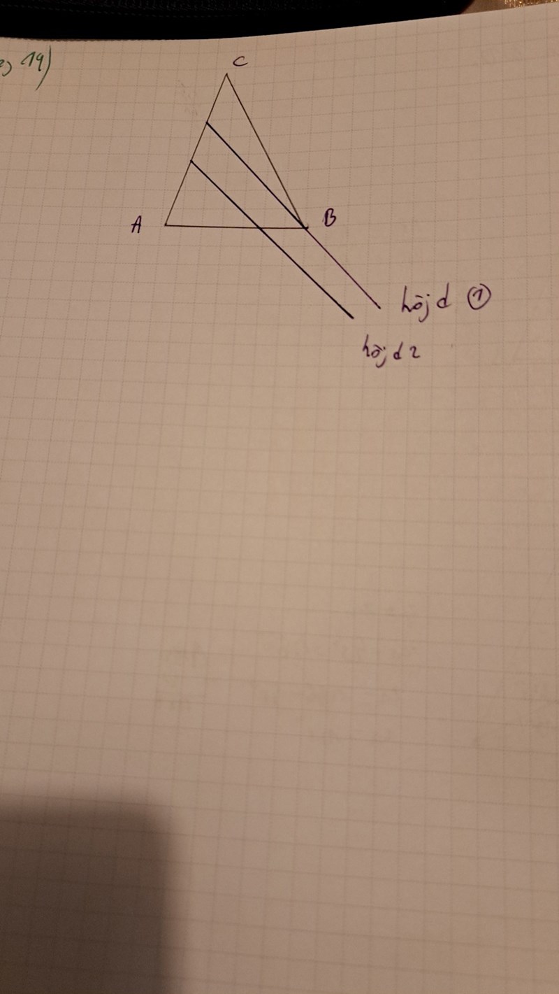 Jag har lite svårt att rita en figur i enlighet med uppgiftstexten. Det jag lyckades med är att rita 2 st höjder som är parallella med varandra och utgår från olika utgångspunkter. Men jag är kanske ute och cyklar.. skulle behöva lite ledtråd tack!