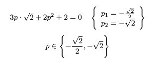 Skrev upp koden på Overleaf och det funkade utmärkt. Har ändrat mitt inlägg. Hoppade över några steg vid 3p·2+2p2+2=03 p \cdot \sqrt{2}+2 p^2+2=0.