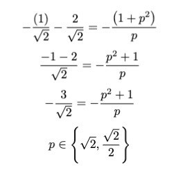 • Fall 2: -12-22=-1+p2p-\frac{1}{\sqrt{2}}-\frac{2}{\sqrt{2}}=-\frac{1+p^2}{p}