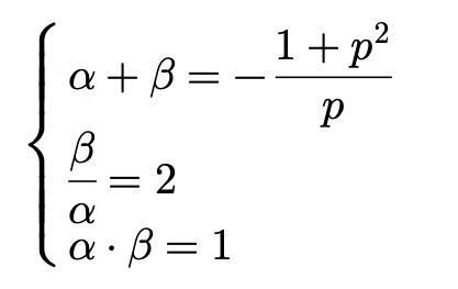 β=2α=-2(1+p2)3p\beta=2\alpha=-\frac{2(1+p^2)}{3p}
