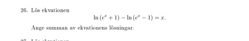 Jag tyckte den frågan var väldigt klurig under prov dagen och fick typ hjärnsläpp. Har den ekvationen ens lösningar? Jag såg inga genvägar när jag försökte lösa med log reglerna
