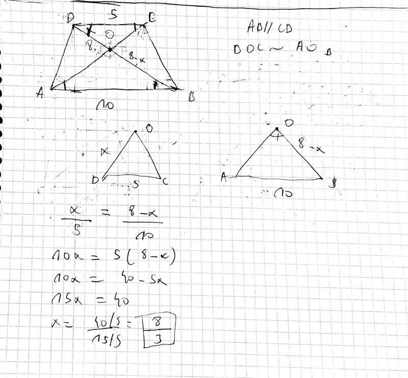 Då har vi två trianglar, DOC och AOB som är likformiga eftersom de tre hörnen är parvis lika stora.