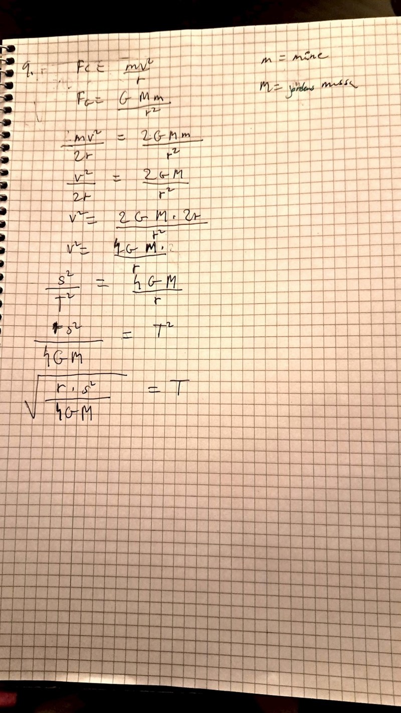 Så det går att säga såhär: F = (2*pi*r)^2/T^2 = G*M*m/r^2