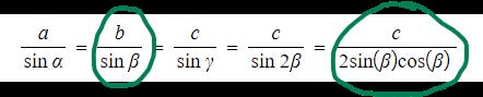 Sinussatsen ger, tillsammans med dubbla vinkeln och trigonometriska formeln för sin 2v: