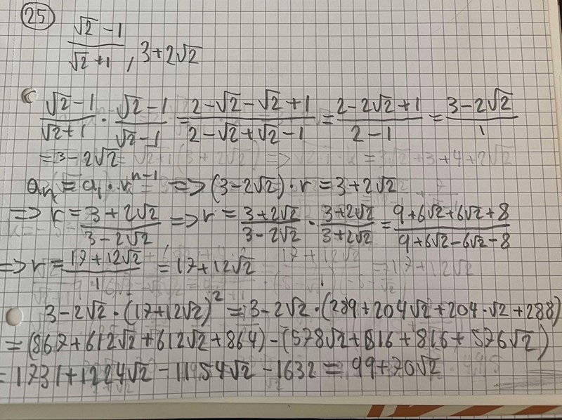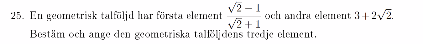 Annars kan man lika bra svara 2+12-13+222\dfrac{\sqrt{2}+1}{\sqrt{2}-1}\left(3+2\sqrt{2}\right)^2 . Inte alls lika snyggt, men så sparar man ännu mer tid!