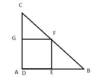 Tack snälla! Ser ut som att triangeln ADG och EBF är lika stora och även deras Areor? Vet ej om detta är rätt antagande. Tänker om stora triangeln har 28 areaenheter och triangeln ovanför GFC har 7 areaenheter. Så borde det bli 28=7+ADG+EBF+kvadratarean