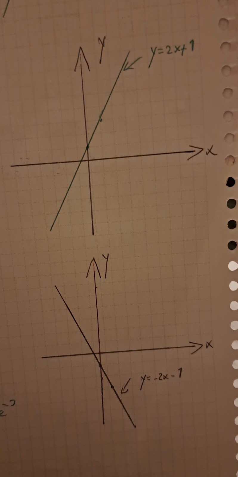 Yngve skrev:destiny99 skrev:Om vi har y1= 2x-1 och y2=-2x-1. Båda är räta linjer
