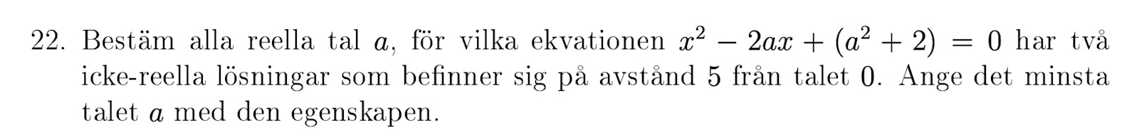 Kör man vanlig lösning kommer man fram till , sedan får man finna det a som gör att lösningen befinner sig 5 från talet 0. Alltså .
