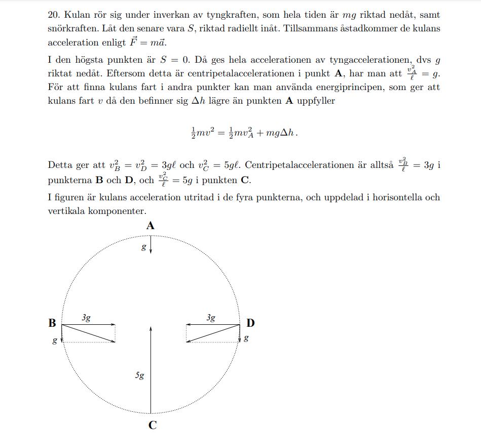 Borde inte accelerationen i punkten C vara 4g riktat in mot mitten i och med att gravitationsaccelerationen är 1g nedåt, alltså 5g-1g=4g? Har dom gjort slarvfel och glömt bort detta eller är det 5g?