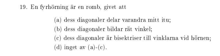 Jag begriper inte riktigt hur dom menar att figuren ser ut, skulle någon kunna rita det så hade det varit snällt för c är svaret men de står en fyrhörning är en romb ? liksom varför skriver dom inte en romb bara, det finns som känns konstigt