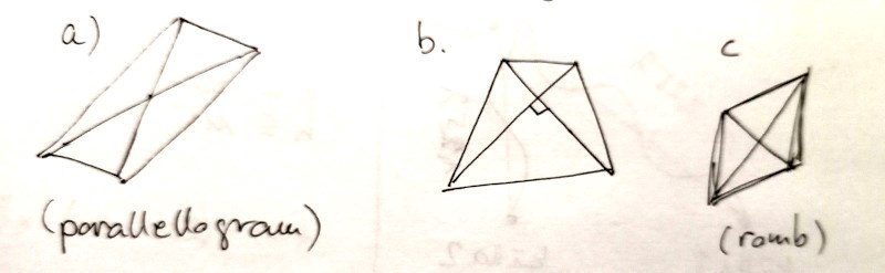 Frågan är egentligen: vilket är ett tillräkligt villkor? Om jar ritar en sådan fyrhörning, blir den nödvändigtvis en romb?