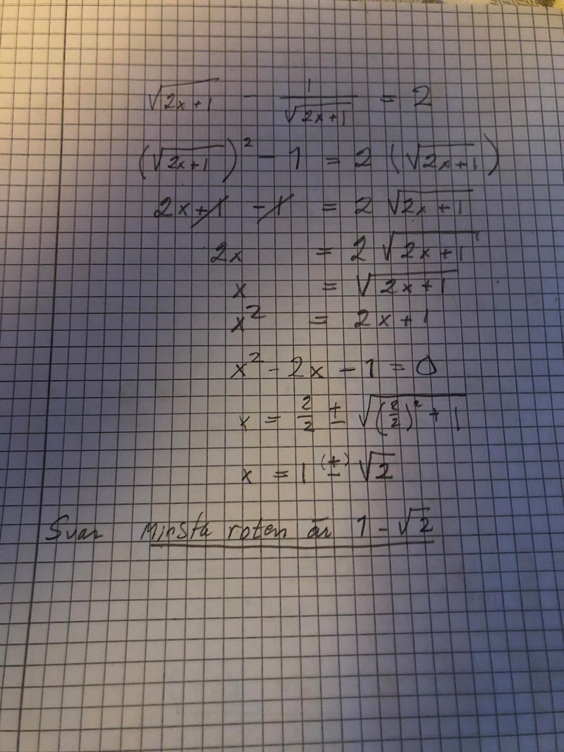 Det stämmer inte att är en lösning, det är en falsk rot pga kvadreringen. det existerar endast en lösning, nämligen vilket ger att det är den minsta lösningen är .