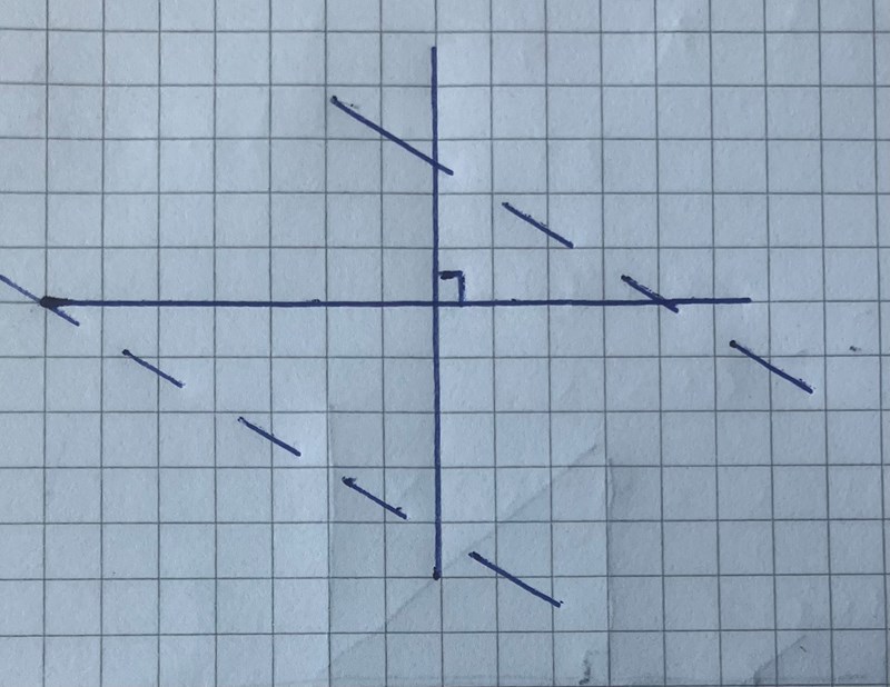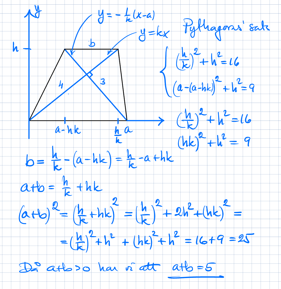 Den andra linjen har ekv. y=-1/k(x-a) och på samma sätt
