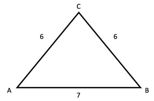 Skissa en triangel som ungefärligt uppfyller sidlängderna i uppgiften: