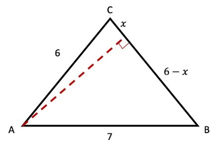 Kalla höjden h, och den korta delen av sidan BC för x: