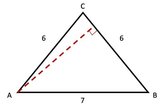 Höjden som efterfrågas går från hörnet A, och bildar en rät vinkel mot sidan BC: