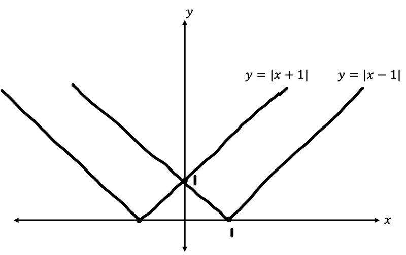Ett snabbare sätt att lösa ekvationen är att rita upp graferna till de två absolutbeloppen för hand. Det behöver inte vara snyggt: