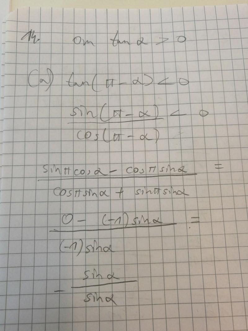 Jag förstår ej hur vi ska visa att tanalfa är större än noll? Och varför är - tanalfa <0?