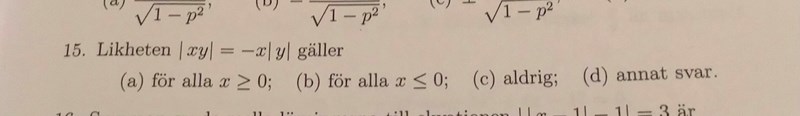 Tack så mycket D4NIEL! Jag tror att jag fick till det; då likheten endast ska bero på x behöver vi inte betrakta abs(y) och genom att bryta ur abs(x) ser vi att likheten gäller för x<=0: