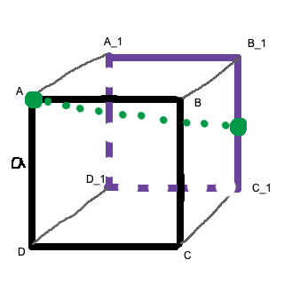 Eftersom kubens sidor har längden a, är sträckan B1E lika med a/2 (E ligger på mitten av kubens sida B1C1). Nu behöver vi därför hitta längden av sidan AB1, så att vi kan använda Pythagoras sats för att beräkna längden av sträckan AE. :)