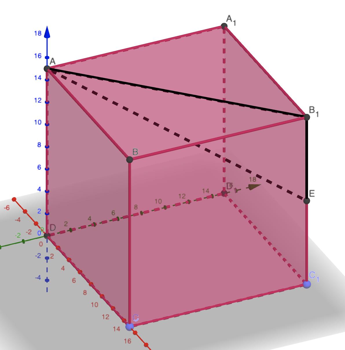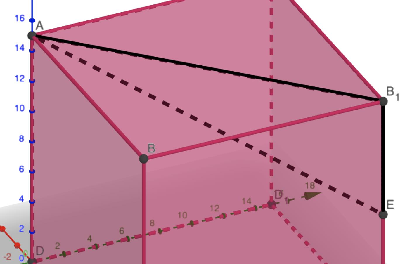 Triangeln AB1E är rätvinklig, som nämnts ovan. Du har AB1 och B1E så AE beräknas med Pythagoras.