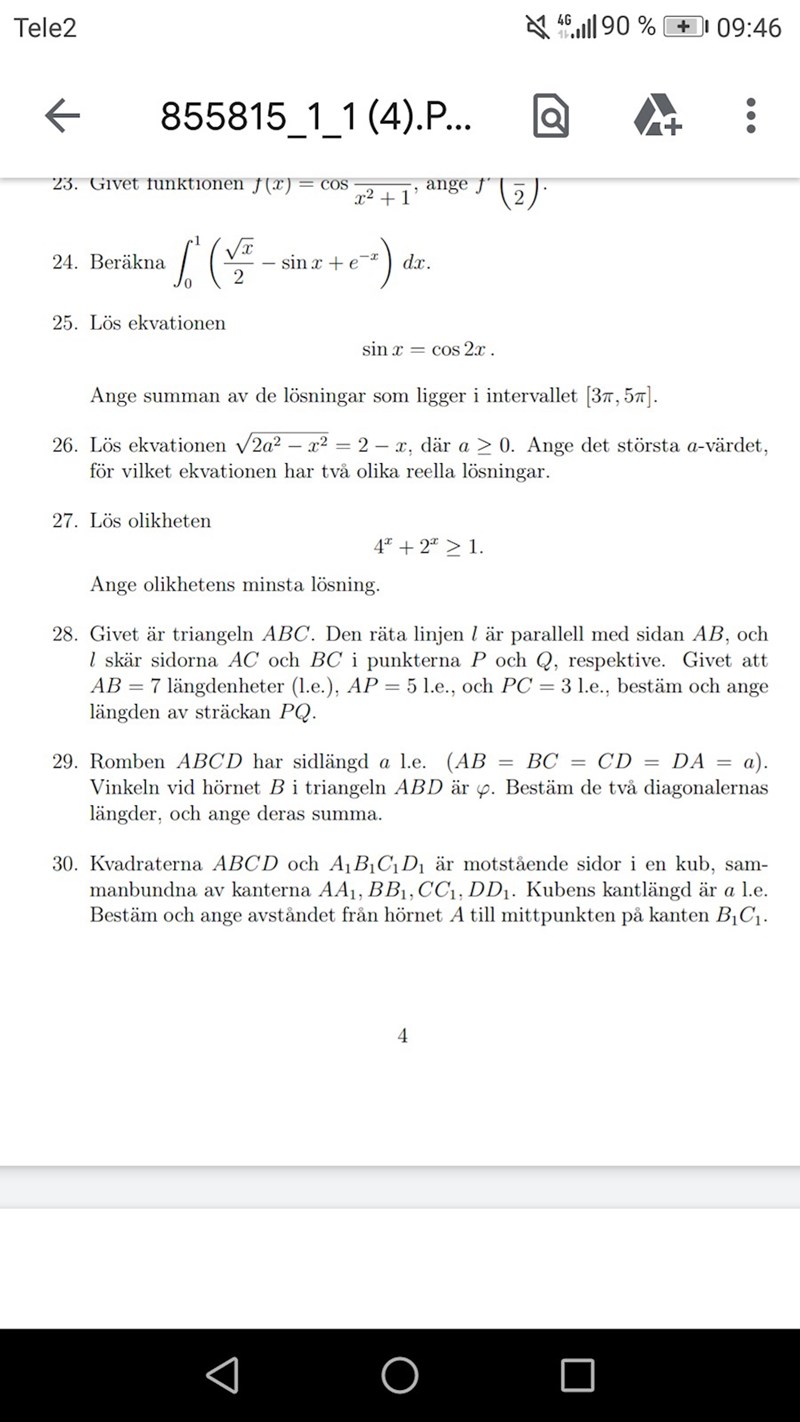Ok. Sträckan B1E är väl a/2?  Då blir Ab1 roten ur 2*a. Men jag ser ej att vi ska använda Pythagoras sats för att bestämma AE