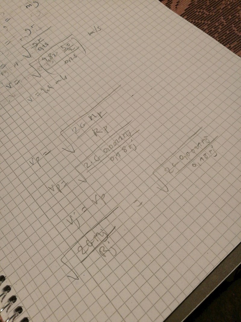 Hm varför ställer du vj^2? Det känns rörigt nu. Kan du ta det stegvis? Ja det är svårt att göra räkning utan räknare på det här. Ja jag har 4 alternativ men det blir typ gissning från min sida. Jag förstår ej förhållande som du menar