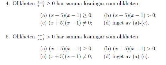 - Eftersom x = 1 ingår i lösningsmängden till a) men inte i M så är de inte densamma.