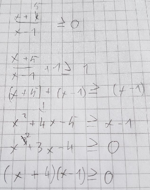Felet du gör i din uträkning är att du multiplicerar olikheten med (x - 1) utan att ta hänsyn till möjligheten att (x - 1) < 0. Om så är fallet så måste du vända på olikhetstecknet. Din uträkning gäller alltså endast då (x - 1) > 0, så du måste då ta hänsyn till olika fall.