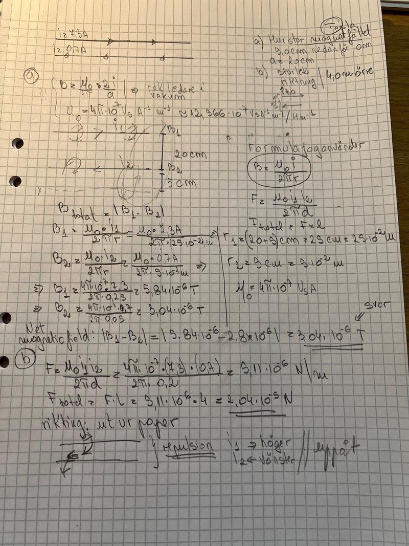 Med dessa strömmar och detta avstånd blir det . Så det stämmer med ditt svar.