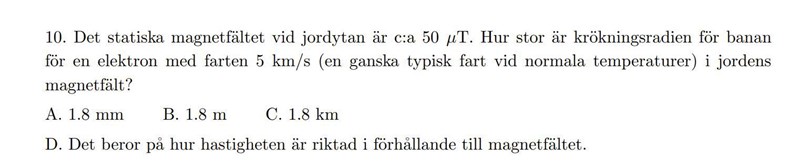 Känner du till några formler? Hur stor är den magnetiska kraft elektronen utsätts för?