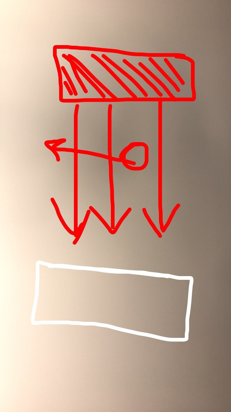Kopparstaven sitter som ett minustecken i din bild. Dynamometern sitter fast i din näsa, där du sitter famför datorn. Om dynamometern lossnade, skulle kopparstaven åka ut på baksidan av datorskärmen.