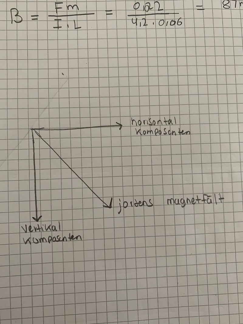 kabelns magnetfält är vinkelrätt mot jordens magnetfälts horisontalkomposant!