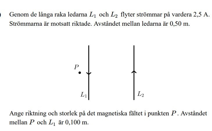 Jag förstår inte vad jag gör för fel på denna uppgift. först bestämde jag B i punkten P för ledare 1 sedan gjorde jag det fr ledare 2.