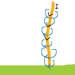 Blixten slår ned i marken, och blir ungefär som en lång, rak ledare: