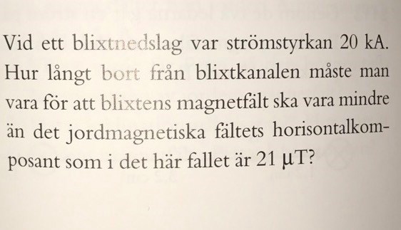 Hade det varit lättare att lösa uppgiften om man bara hade frågat "Hur långt från blixtnerslaget behöver man vara för att blixtens magnetiska fält skall bli mindre än 21µT"?