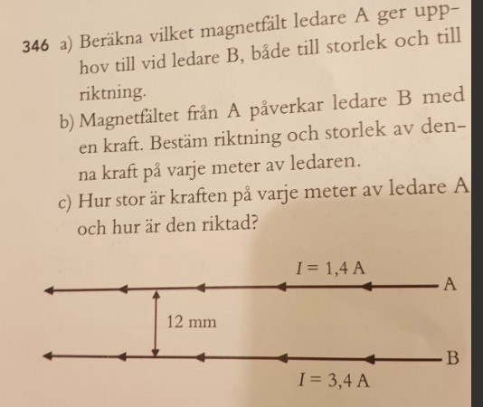 Men det är fel, de tar 3,4A istället för 1,4A och detta är vad jag inte förstår. varför tar de strömmen på 3,4A som är ledare B när det är ledare A som som påverkar B med en kraft?