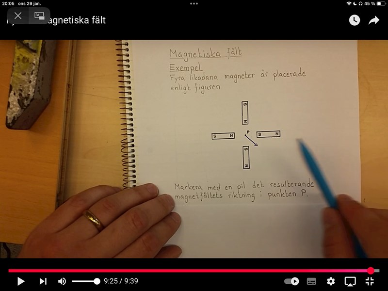 Min fråga är: Varför gå den resulterande kraften just så där. Jag vet att magneterna bildar magnetfält som påverkar p och att det går från nord till syd men jag vet inte varför. Kan någon snälla förklara med kraftuppdelning eller liknande.