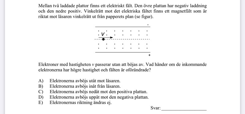 - Åt vilket håll måste då det andra fältet verka på elektronerna för att de inte ska böjas av?