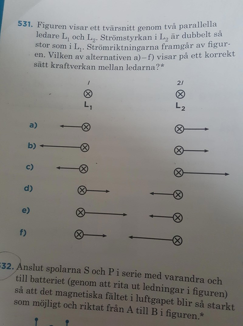 Har problem med att förstå hur det kommer sig att svaret på frågan inte är alternativ e)? Jag trodde att magnetkraften enligt F= L x I x B skulle fördubblas om strömmen gjorde det?