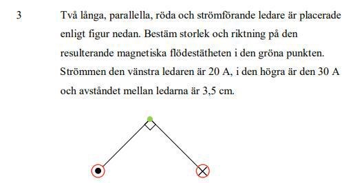 Jag tror att du får utgå från att punkten ligger mittemellan de två ledarna (i x-led), annars går det inte att räkna ut. :)