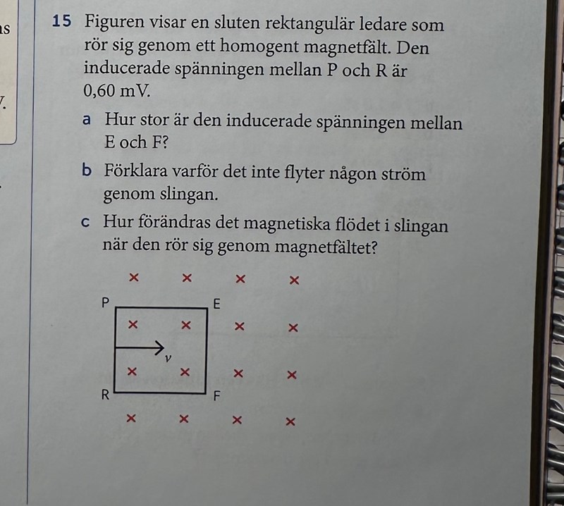 Hursomhelst så vill uppgiften a) bara veta den inducerade spänningen i högra sidan (E–F), vilket är 0,60 mV.