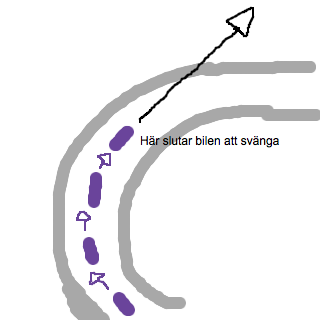 Vi tänker oss en bil som kör i en kurva. Den måste hela tiden svänga för att inte glida av banan. Om den slutar svänga fortsätter den köra rakt i den riktning som bilen hade när den slutade att svänga: