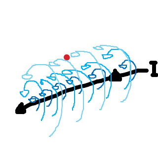 - En ström i en ledare producerar ett magnetfält som går i cirklar runt ledaren.