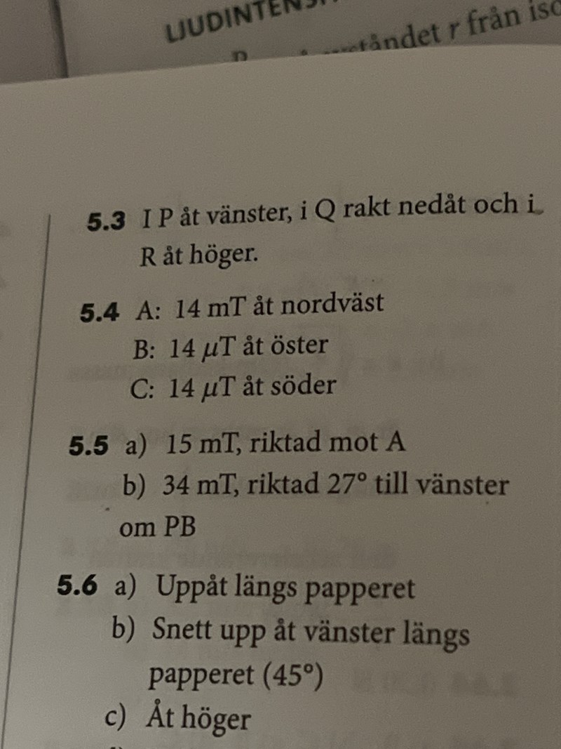 Jag fattar inte hur facit har fått fram att svaret på A, B och C är 14 mili tesla resp 14 mikro tesla på B och C samt dess riktningar.