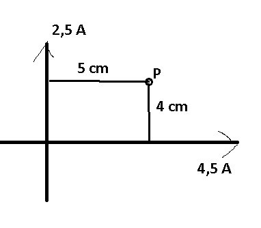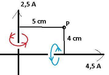Åt vilket håll är fältet från 4.5A ledaren riktat i punkten P? (Använd gärna skruvregeln)