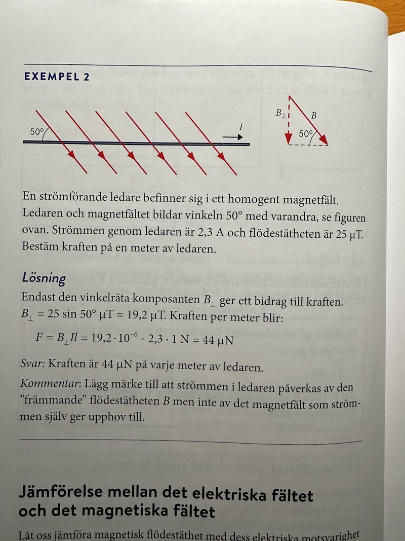 Biorr skrev:Ly är okänd när ledaren (strömmen) komposantuppdelas, med det är inte relevant pga det inte är vinkelrät med flödestätheten.