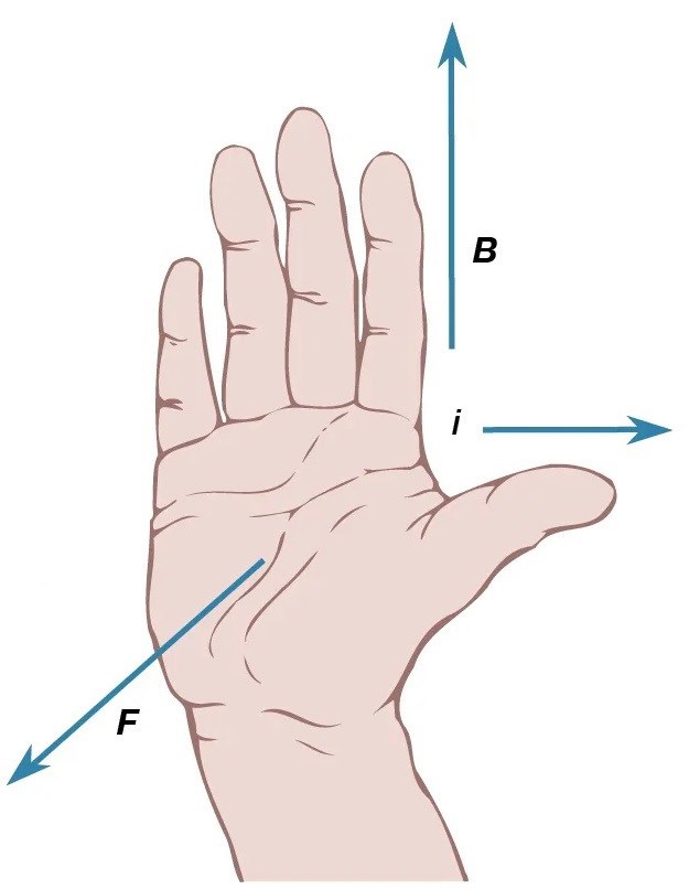 Ja, det stämmer. Fast handen ovan gäller en positiv partikel. Det är när du har en negativ partikel du får vända på riktningen för strömmen alternativt riktningen för partikeln.
