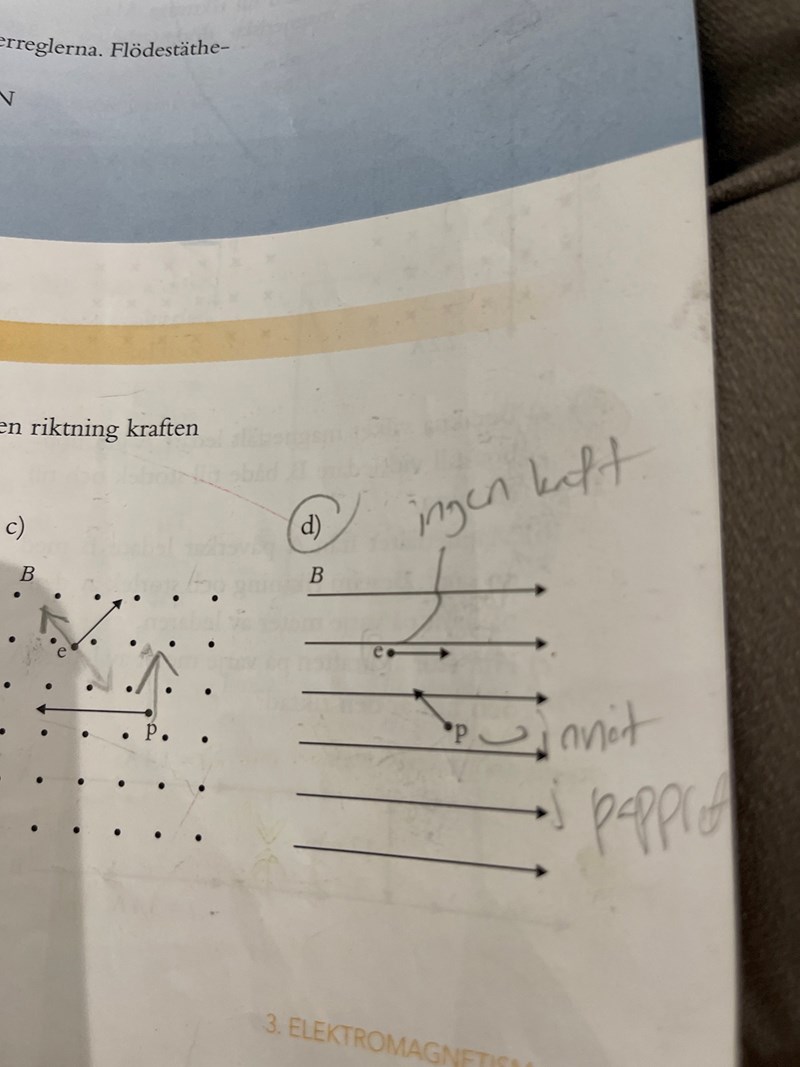 Hej! Jag förstår inte hur kraften på protonen i uppgift d är ”inåt i pappret”. Jag förstår inte hur man ska komma fram till det