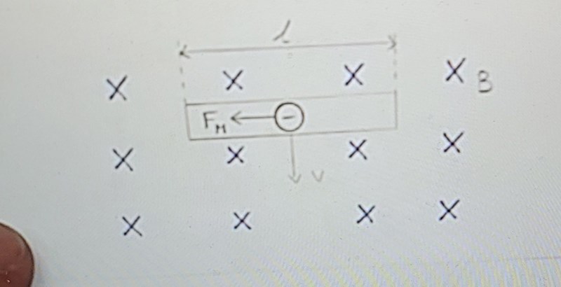 På Bilden visste vi att B pekar inåt och hastigheten pekar nedåt. Är det så att strömmen, I, kommer peka uppåt, vilket gör att Fm pekar till vänster?